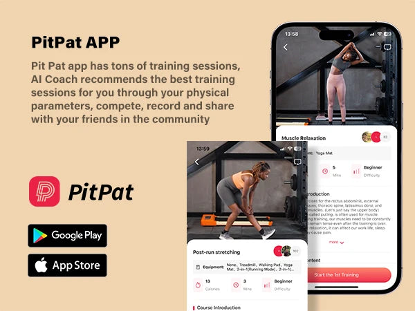 Connect to our PitPat application to monitor your exercise data. Provide outdoor sports scene simulation, various courses, and professional artificial intelligence coaches
